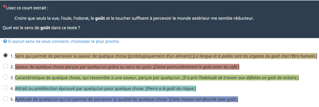 Comme dans le cadre du projet ALUMCoCo, les étudiants découvrent une polysémie, annotent des contextes et nous font part de leur sentiment de difficulté.